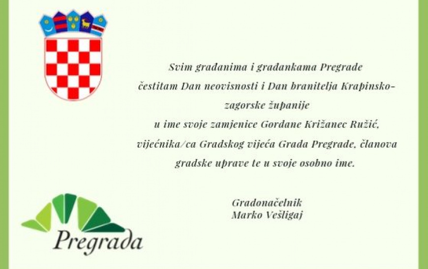 Čestitka povodom Dana neovisnosti | Grad Pregrada - službene straniceSkip to main content