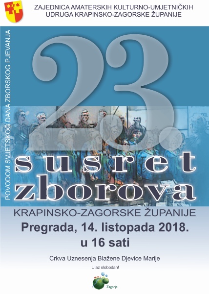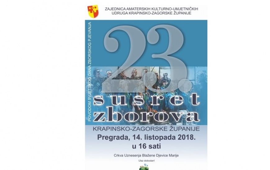 Ove nedjelje Pregrada će ugostiti čak 14 zborova Krapinsko-zagorske županije. Naime, u organizaciji Zajednice amaterskih kulturno-umjetničkih udruga Krapinsko-zagorske županije s početkom u 16 sati u pregradskoj crkvi Uznesenja Blažene Djevice Marije održat će se 23. Susret zborova Krapinsko-zagorske županije.