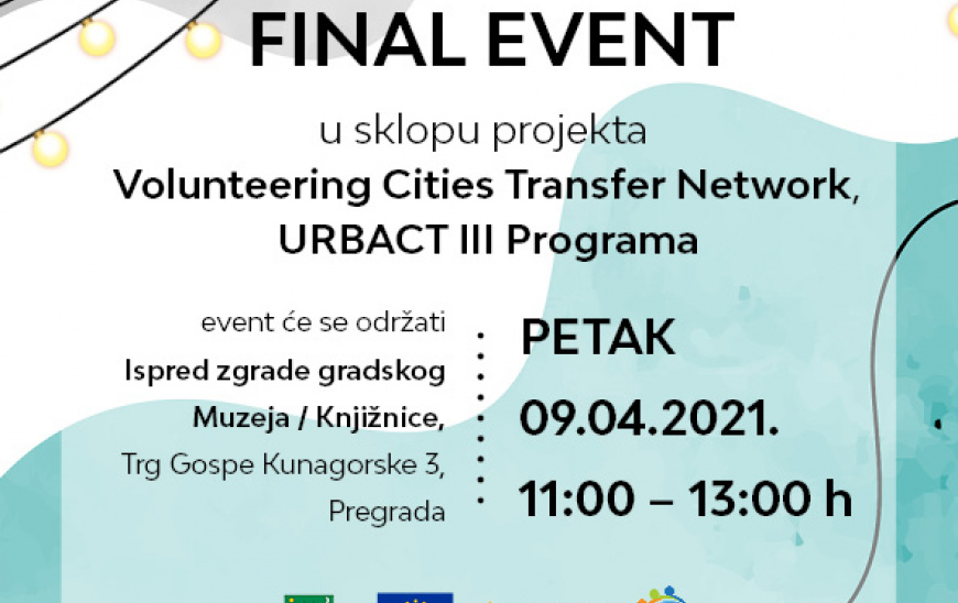 U sklopu projekta Volunteering cities financiranog iz URBACT programa Europske unije u petak, 9. travnja 2021. ispred zgrade Gradskog muzeja i knjižnice od 11 do 13 sati održava se završno događanje na kojem će biti predstavljene provedene aktivnosti.
